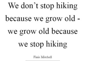 “We don’t stop hiking because we get old, we get old because we stop hiking” This quote has been in my gym for a while & I’m frequently told by people I meet that they can’t do something because they are now over 40! It drives me crazy!